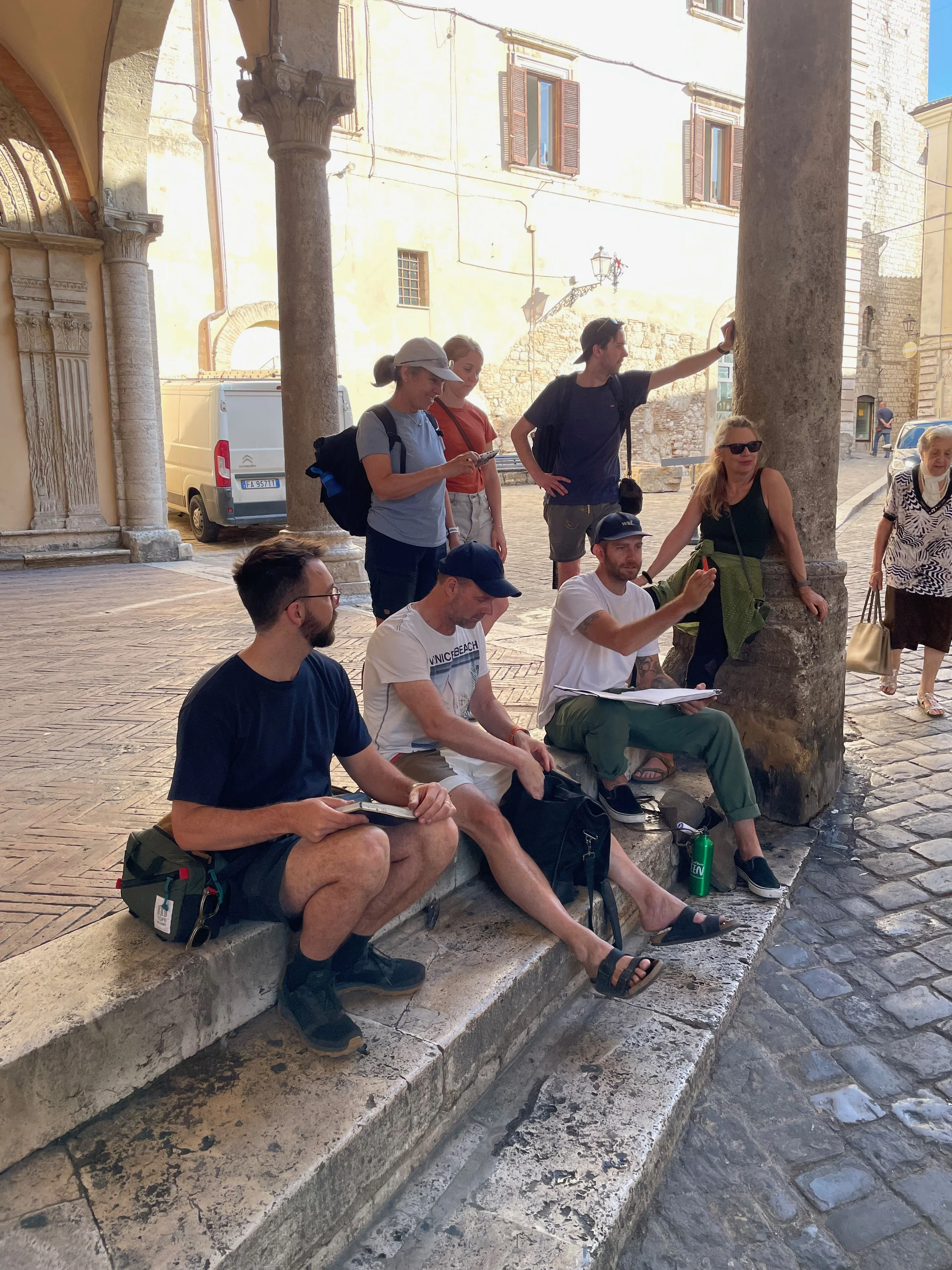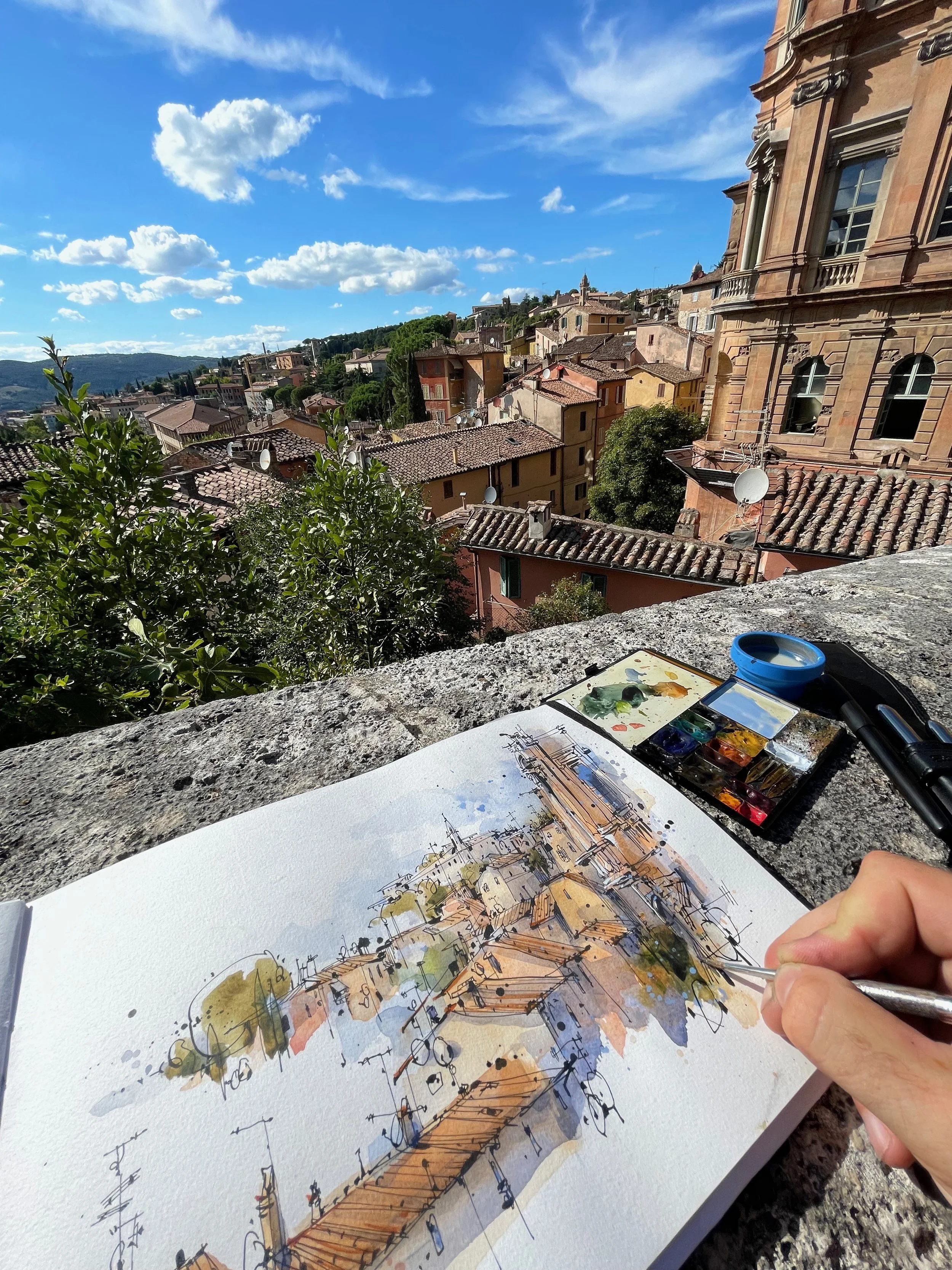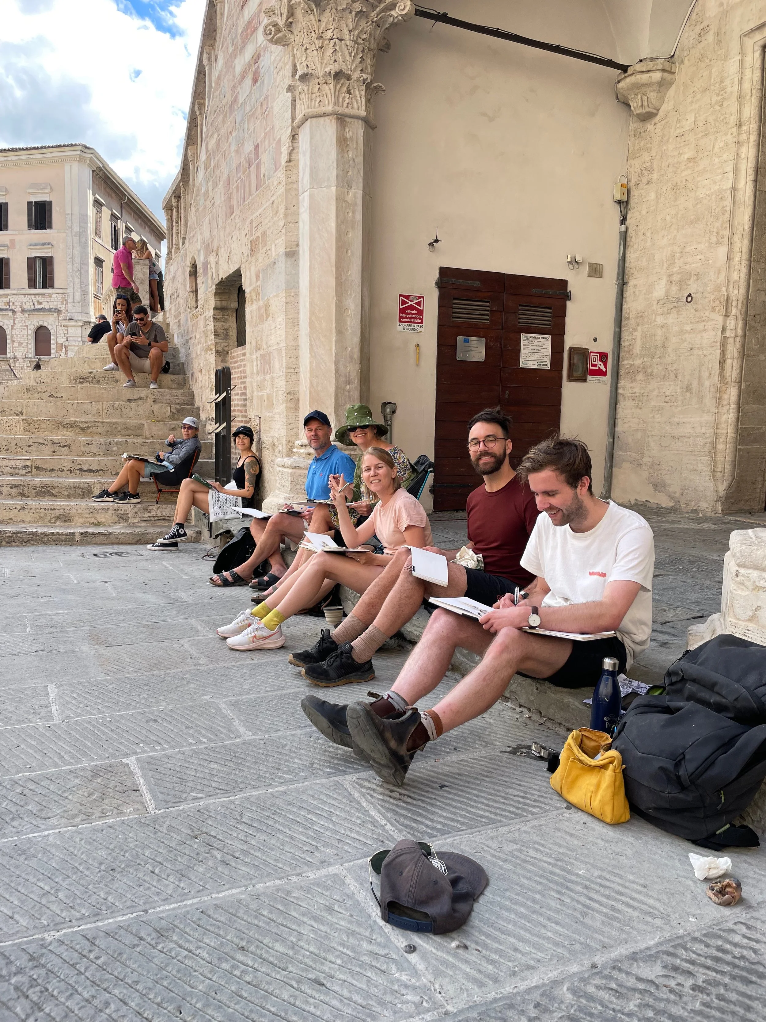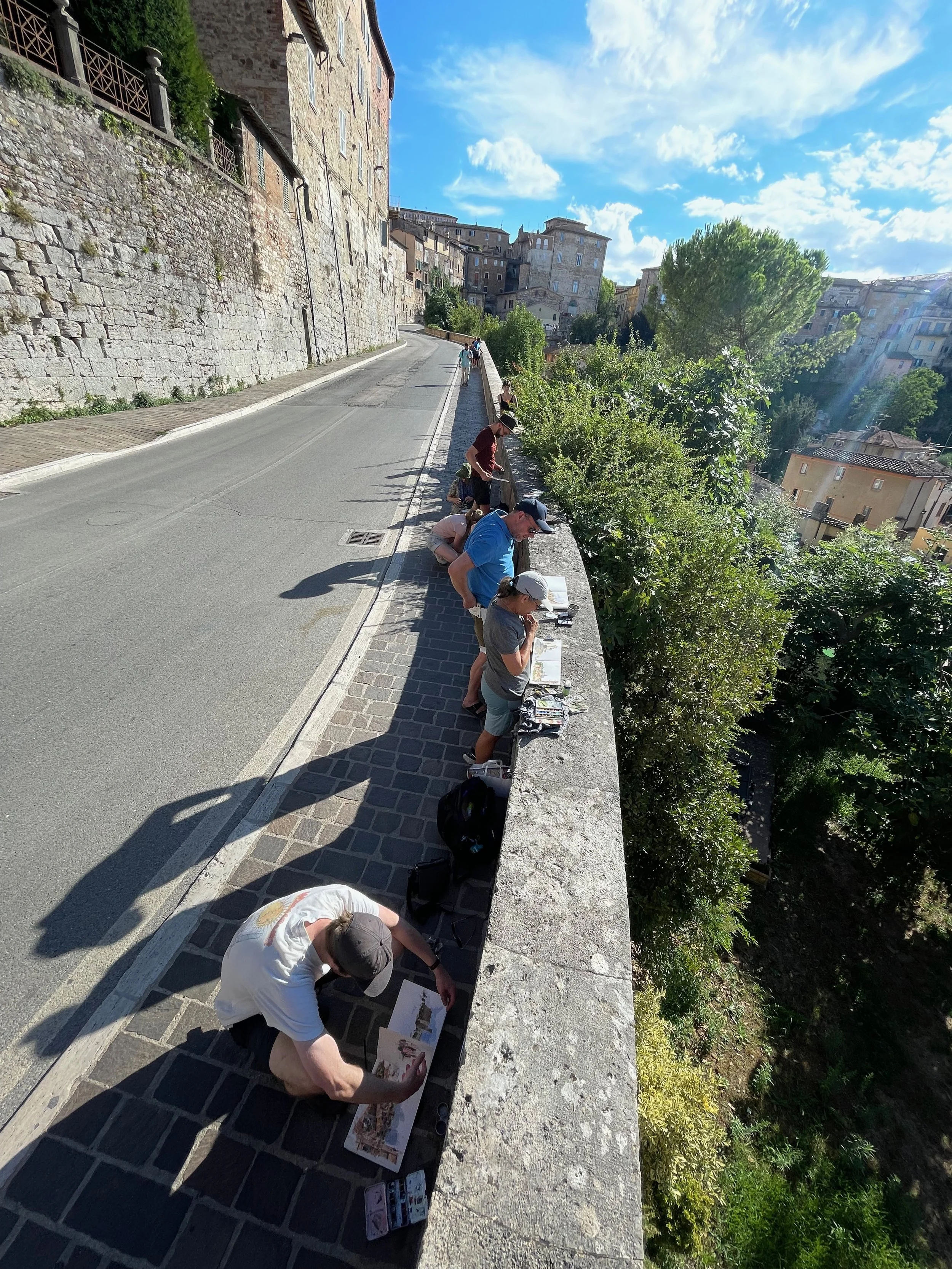 Whether it’s a simple demo, full-day workshop, or immersive week-long course, my focus is to share my approach to understanding complex environments and to compose attention to a specific area or action within a sketch. Using some cinematic staging techniques, I pull together people, vehicles, architecture, foliage, and light to tell the story of the space I’m sketching.